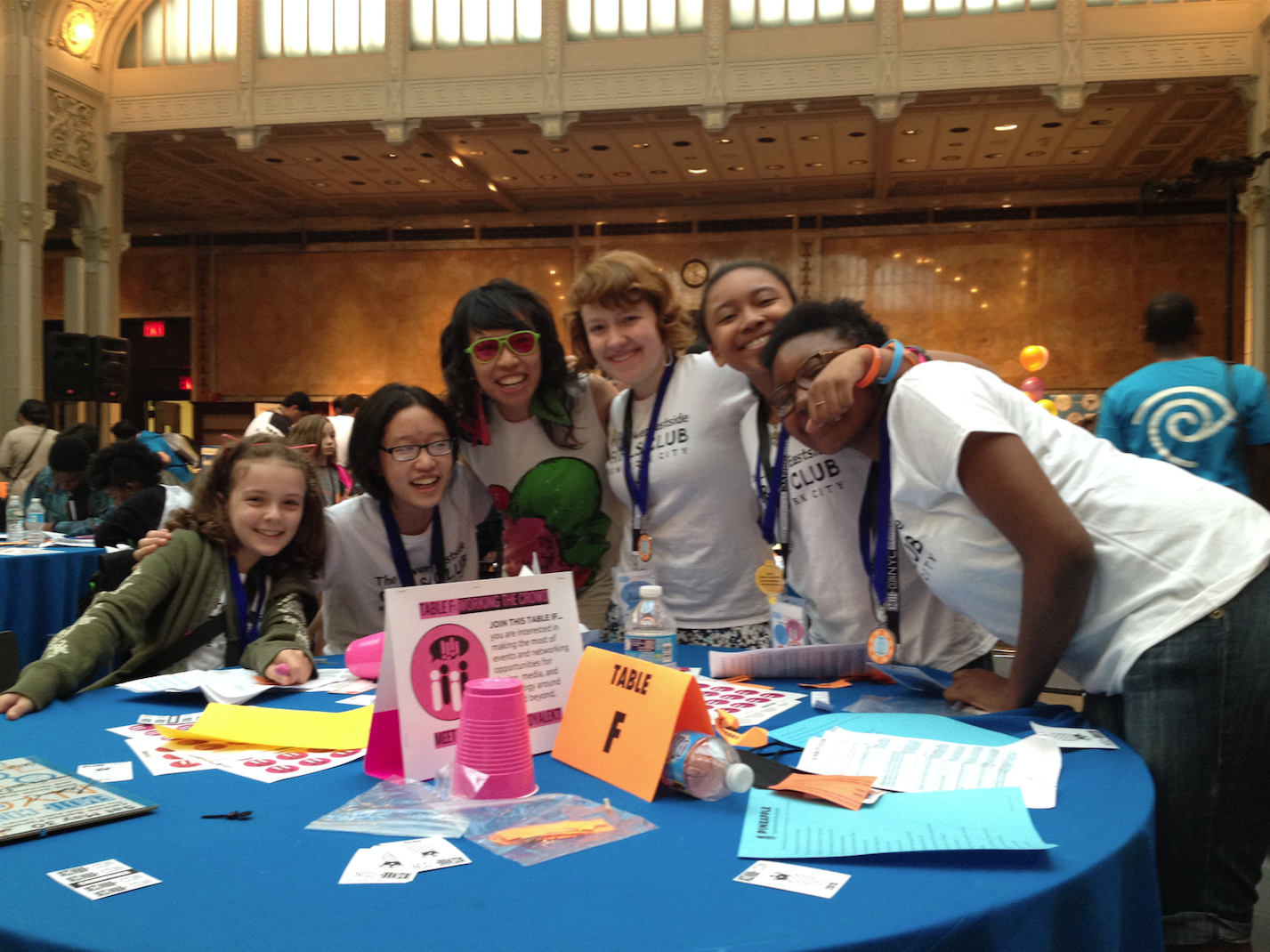 It was a big day for many youth technologists in New York as they came together for Mozilla Hive’s Emoti-Con, a festival of their own inventions, creations, and potential. Think science fair meets conference meets day of play, and you have this special event that takes place every year at the New York Public Library’s famed Celeste Bartos Theater. The Lower Eastside Girls Club, where Arlene is a mentor and physical computing teacher, showed its architectural model for the “Coderpillar,” a real caterpillar-themed staircase on the Girls Club roof that will soon host a cylindrical display of interactive RGB LED lights. For this, the Girls Club was awarded Most Innovative! Arlene was also honored as a keynote speaker for the event.